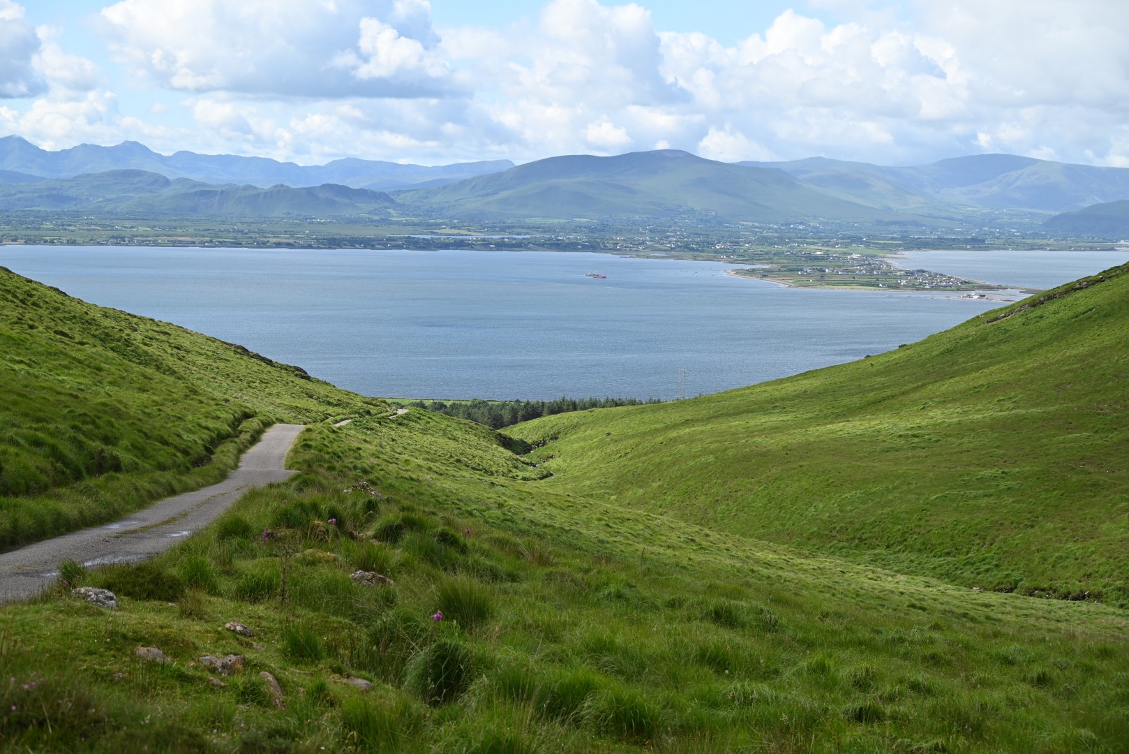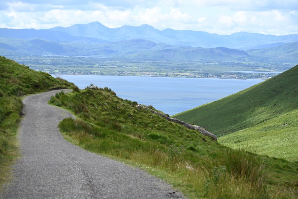 The R560 heads north from Dingle across Conor Pass to An Clochán, crossing the Slieve Mish Mountains. The road quickly winds its way up the barren, grassy hillside. The small road has poor lines of sight and, sadly, with no pull-offs until its peak, you can only admire the scenery from the car. However, at the peak of the mountains, some 456 metres high, a lookout can be found. While the parking lot is small, the abruptness of the ridge means that looking south you can overlook Dingle, Dingle Bay, and, on a very clear day, even glimpse the Skellig Islands. On the north side, a completely different view takes over as you look over Brandon Bay and the coastline stretching to Tralee Bay. The view is spectacular and gives you a sense of the sheer diversity in landscape and intricacy of the coastline found on Ireland’s west coast.