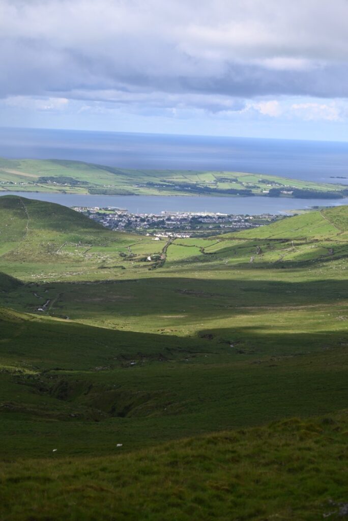 Leaving Minard Beach and all of its beauty behind, we continued on to the town of Dingle. Known for its vibrant shops, restaurants, and music, the picturesque community is a hub for tourism and Irish culture. The port developed as a medieval trading centre between the thirteenth and sixteenth centuries, becoming a hub for the country’s fish, wine, and textile trades with Spain and France. Short on time, we only had a chance to see the town from inside the car before turning inland to cut across the peninsula by taking one of several mountain roads.