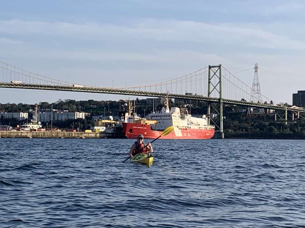 In contrast to Lindsay’s opinion (which, truthfully, holds merit), there are few paddling experiences more exhilarating than navigating a city’s harbor front. Beyond offering a unique perspective of urban landscapes, it provides a fascinating glimpse into the industrial and maritime facets of the city, all while navigating the waters with a constant awareness of oncoming speedboats and outgoing container ships. Despite having explored the outer and inner reaches of Halifax Harbor, the Bedford Basin remained uncharted territory for us until a day beckoning with 20-degree temperatures well into the evening, prompting us to embark on a kayaking expedition from Africville to Wrights Cove.