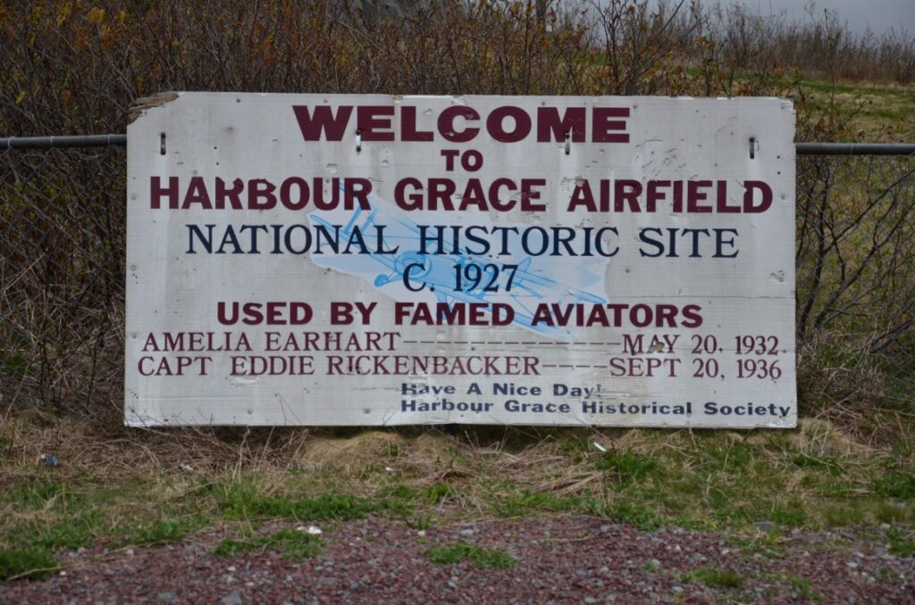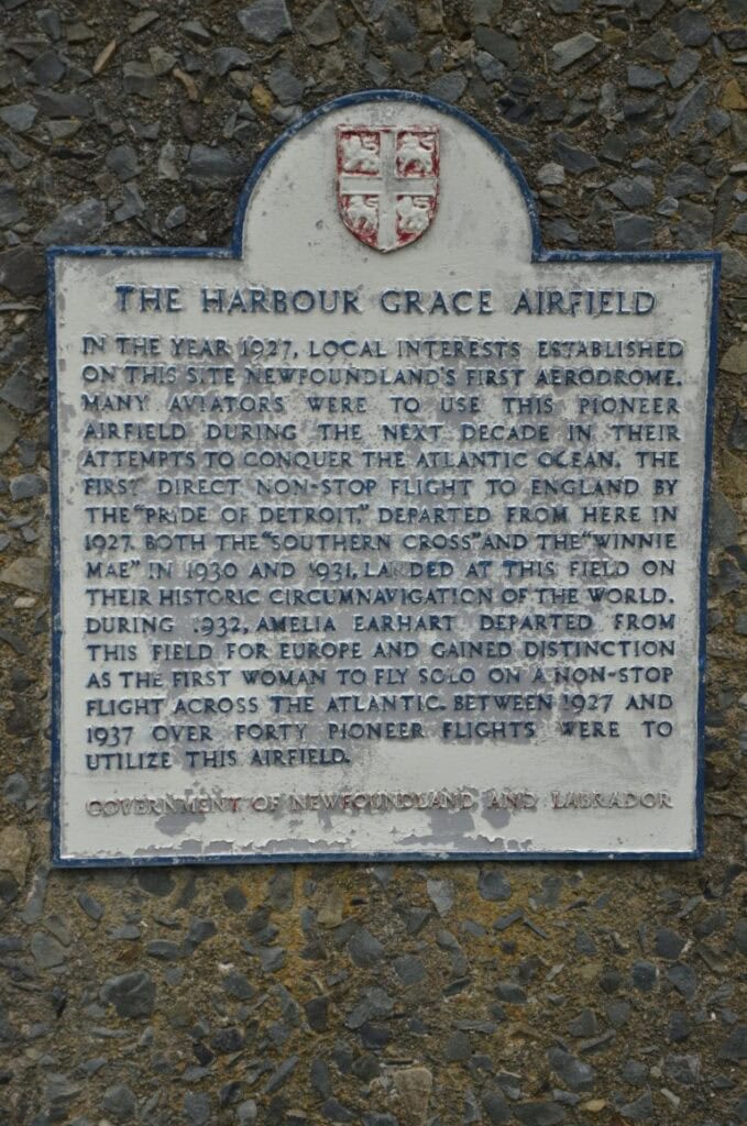Many notable pilots passed through Harbour Grace during its years of operation, but none more famous than aviation pioneer Amelia Earhart. After landing at the airfield, Earhart departed from Harbour Grace on her first solo flight across the Atlantic Ocean. On May 20, 1932, she took off in her Lockheed Vega and flew for 14 hours and 56 minutes before landing in Culmore, Ireland, becoming the first woman to fly solo across the Atlantic. Earhart later became an enduring symbol of equality, and her piloting and navigational skills are memorialized through her many accomplishments. On the waterfront of Harbour Grace, a statue of this historic figure stands alongside a plaque explaining the remarkable feat that began there.