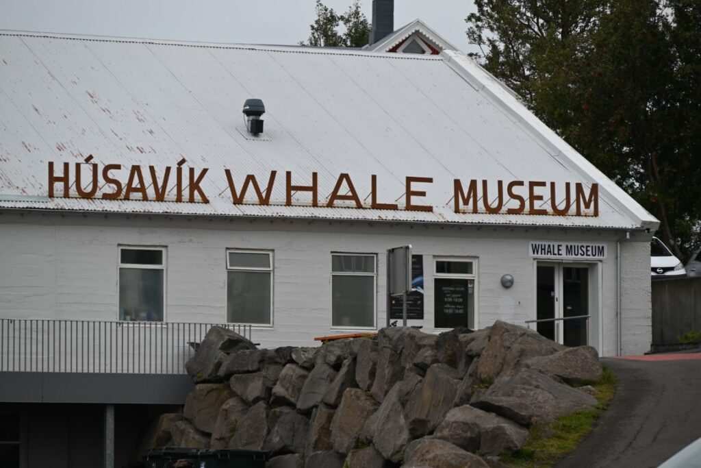 Parking near the harbour, we started our adventure by stopping into the Lókal Bistro for coffee. The day was turning out greyer and wetter than we would have liked, but we were able to escape the periodic drizzle by checking out the town’s many art and craft shops. After wandering around the harbour, we ventured into the Húsavík Whale Museum. Húsavík, and Iceland as a whole, has long partaken in the whale hunt, which Húsavík was once the centre of. After learning about the life and sheer scale of the many species of whales that can be found around Iceland’s coast, the museum takes an emotional turn as it discusses the ongoing negative impacts of whaling, and the new pressure climate change has put on whales in the area. Given the community was centered around this devastating industry for so long, it was a pleasant surprise to see the candid recognition of the impacts of this cruel practice on vulnerable populations.
