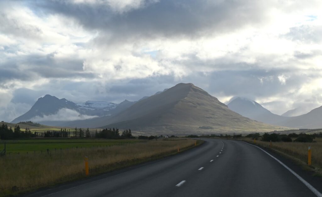Once back on the Ring Road, it is not long before you reach the 7.5-kilometer Vaðlaheiði Tunnel. We were lucky to be warned about the tunnel’s 2,152 ISK toll beforehand, which needs to be paid online (here: https://www.veggjald.is/en) up to 24 hours before or after you’ve gone through it. Driving through the tunnel was a nice break from the wind, which was steadily picking up as the day went on.