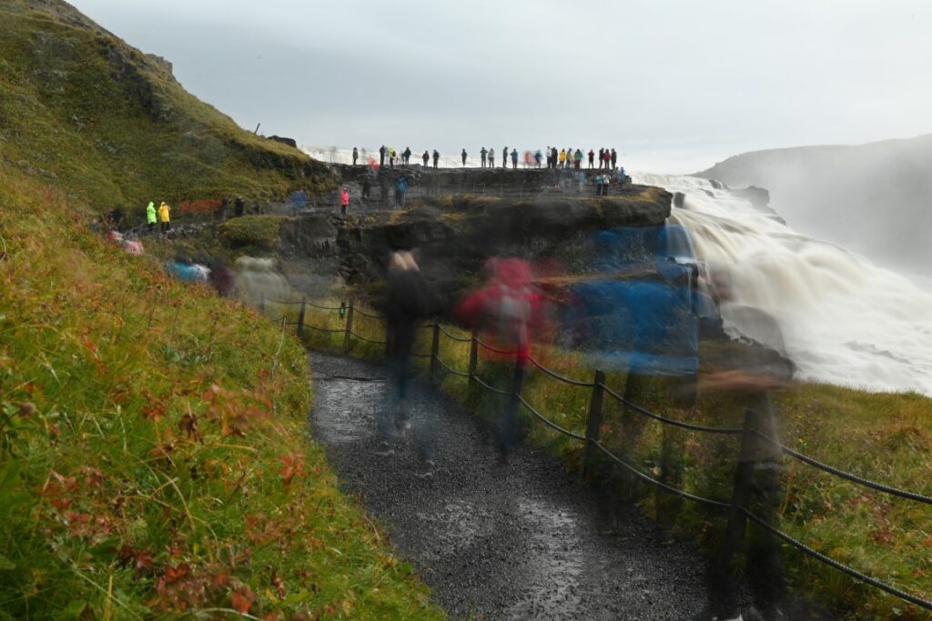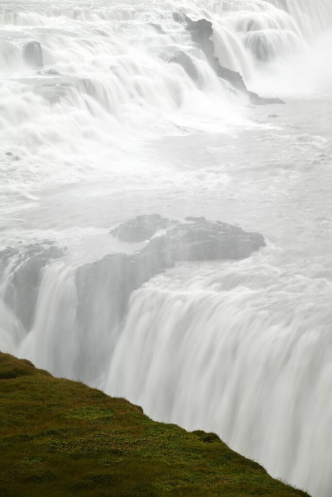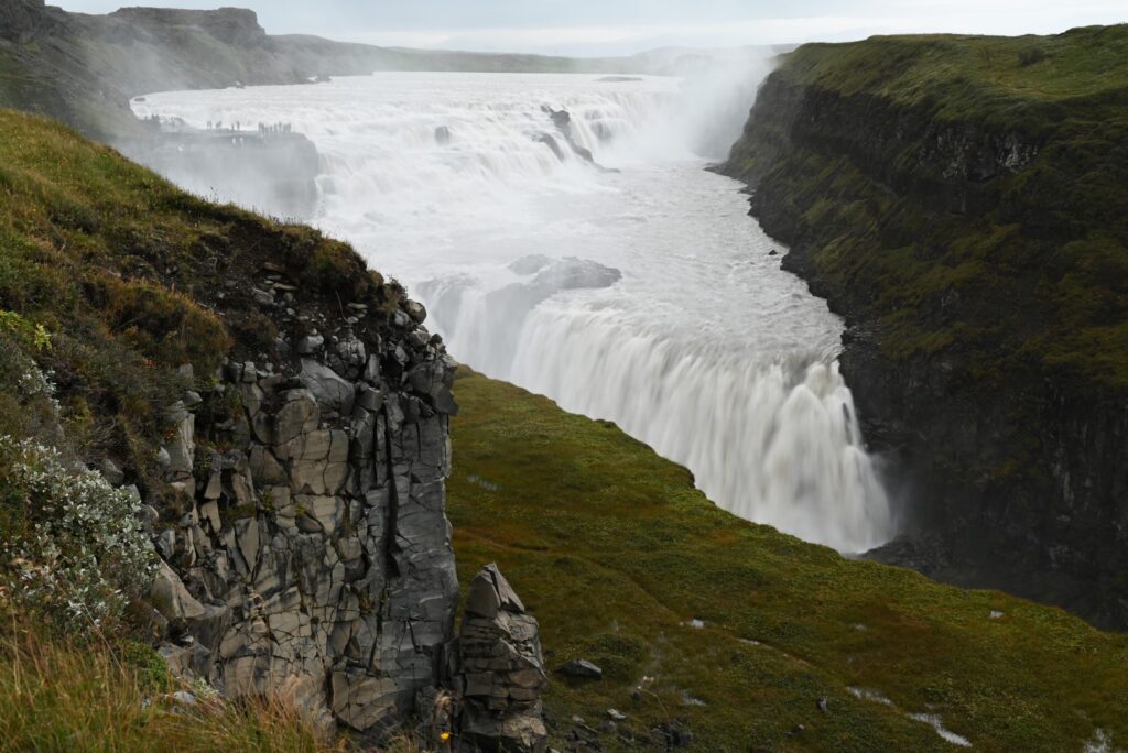 Waking up the next morning, we packed up our gear and continued driving northeast to Gullfoss. The river Hvítá drains the Langjökull ice cap, flowing through the barren, rocky interior before cascading first over an 11-meter drop, followed by a second 20-meter drop into a narrow canyon.
