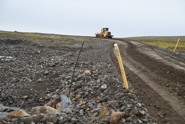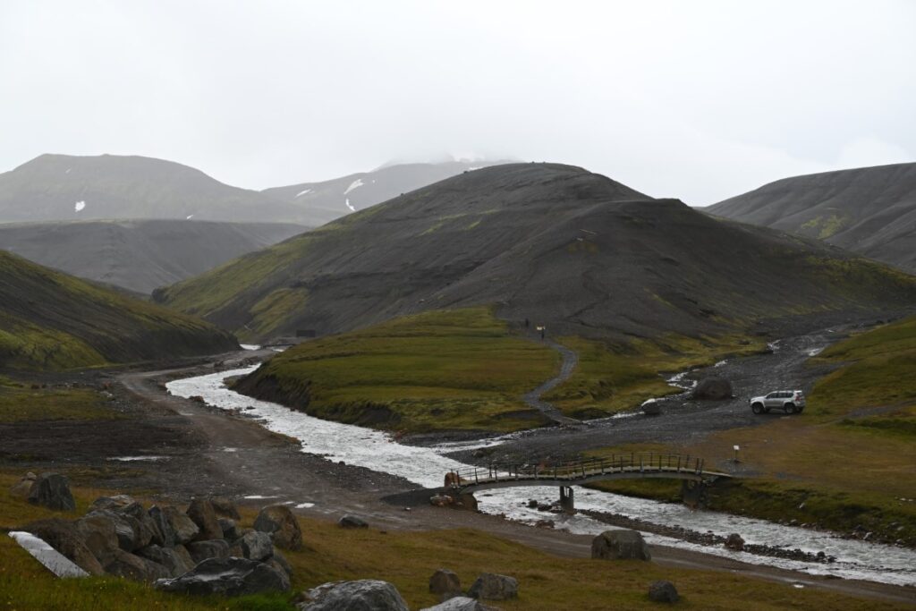 After a few stops along the road—including a questionable encounter with ongoing grading operations—we finally reached Highland Base, a modern lodge, campground, and spa seemingly built in the middle of nowhere. After a quick sandwich, we ventured inside to use the washroom, where we confirmed our suspicions that this was outside our price range. We then began a short hike along a nearby river before climbing a small ridge overlooking the valley. This area, known as Ásgarður, lies at the base of several ridges carved by glacial-fed rivers. In itself, it is a beautiful destination, but with limited daylight and bursts of cold rain, we hopped back in the car and continued along F347, the branch of F35 leading to Kerlingarfjöll.