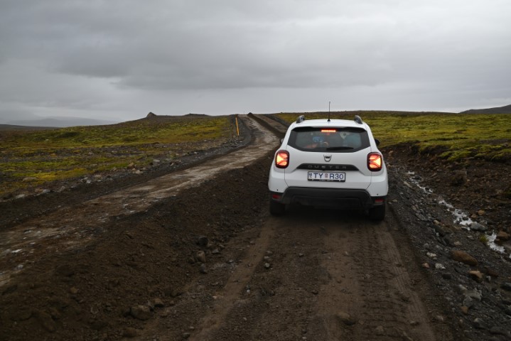 It was here that we got our first taste of what “overtourism” looks like. We’re not accustomed to being surrounded by so many people, so the line of hikers along the trail and the shoulder-to-shoulder picture-taking proved to be a bit much. Nonetheless, the crowds—of which we were, admittedly, part—could not diminish the scale and natural beauty of the falls. In hindsight, the crowds were even comforting: as we exited the parking lot, most people turned back to continue their Golden Circle adventures, whereas we turned east. Soon, the pavement disappeared, and we were entering Iceland’s Central Highlands on our first F-road adventure.