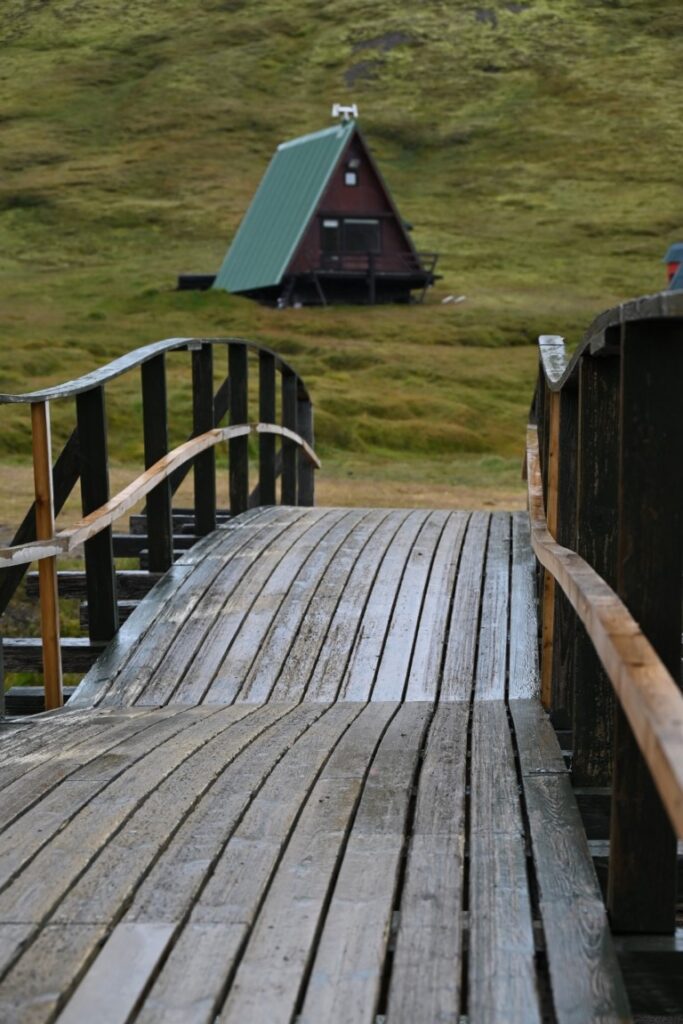 After exploring the network of trails, staircases, and boardwalks that wind through the valley, we made our way back to the car and began the daunting descent to the lodge at Ásgarður. We had originally planned to stay at the campground, but between the plummeting temperature (now hovering around zero) and persistent winds with little shelter, we decided to head back to F35. Once within cell service, we abandoned camping altogether and booked a cabin with a geothermal hot tub at Úthlíð Cottages in Bláskógabyggð for the night. We enjoyed some Icelandic beer, cooked a hearty pasta meal, and warmed ourselves in the hot tub before turning in.
