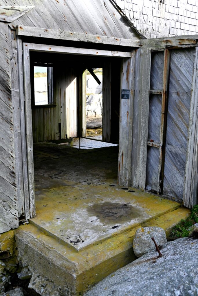 At the center of the island, in a small protected inlet, stands the Sambro Island gas house. This wooden, rectangular building is nestled near the shoreline, supported by a granite stone foundation. Built in 1939, at a time when Halifax Harbour was growing in importance as a naval base, the Canadian government began modernizing lighthouse infrastructure.