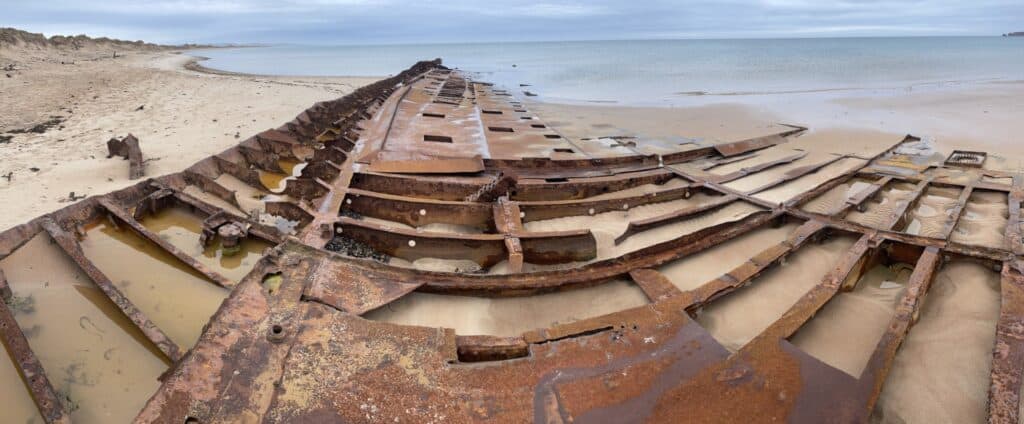 Once the storm subsided the following morning, the ship was declared a total loss and left abandoned on the beach. Over the decades, repeated storms have stripped the vessel down to its skeletal remains, now partially visible above the sand and surf at West Dune Beach. The beach itself has become a popular summer destination for tourists, many of whom are surprised to stumble upon this haunting piece of maritime history.